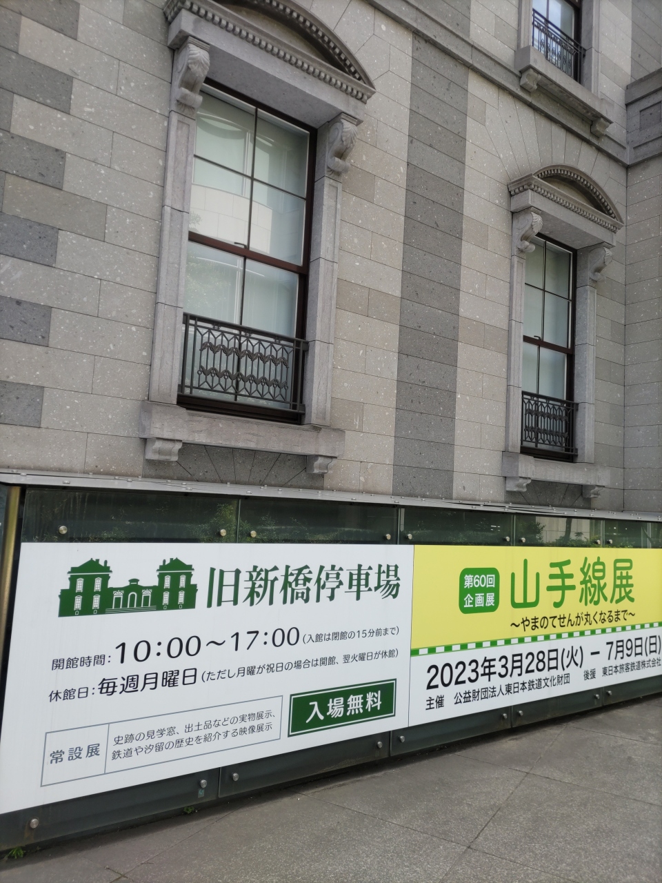 先日ブラタモリのテレビ番組でもこの汐留界隈をとりあげていて、そうするとやはりこのエリアは日本の鉄道開業の地としての、昔の鉄道についてなどもやっていて、この辺をうつしていました。 旧新橋停車場駅舎の再現に合わせて開設されている無料の展示室。山手線展が開催中