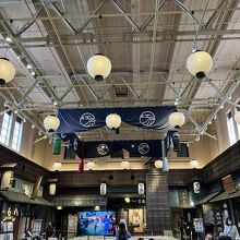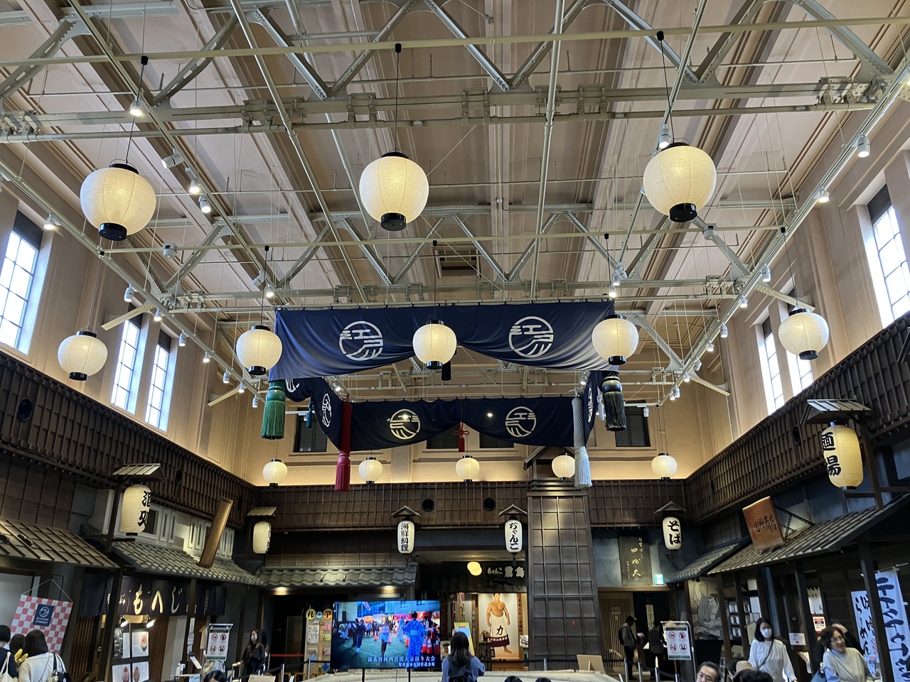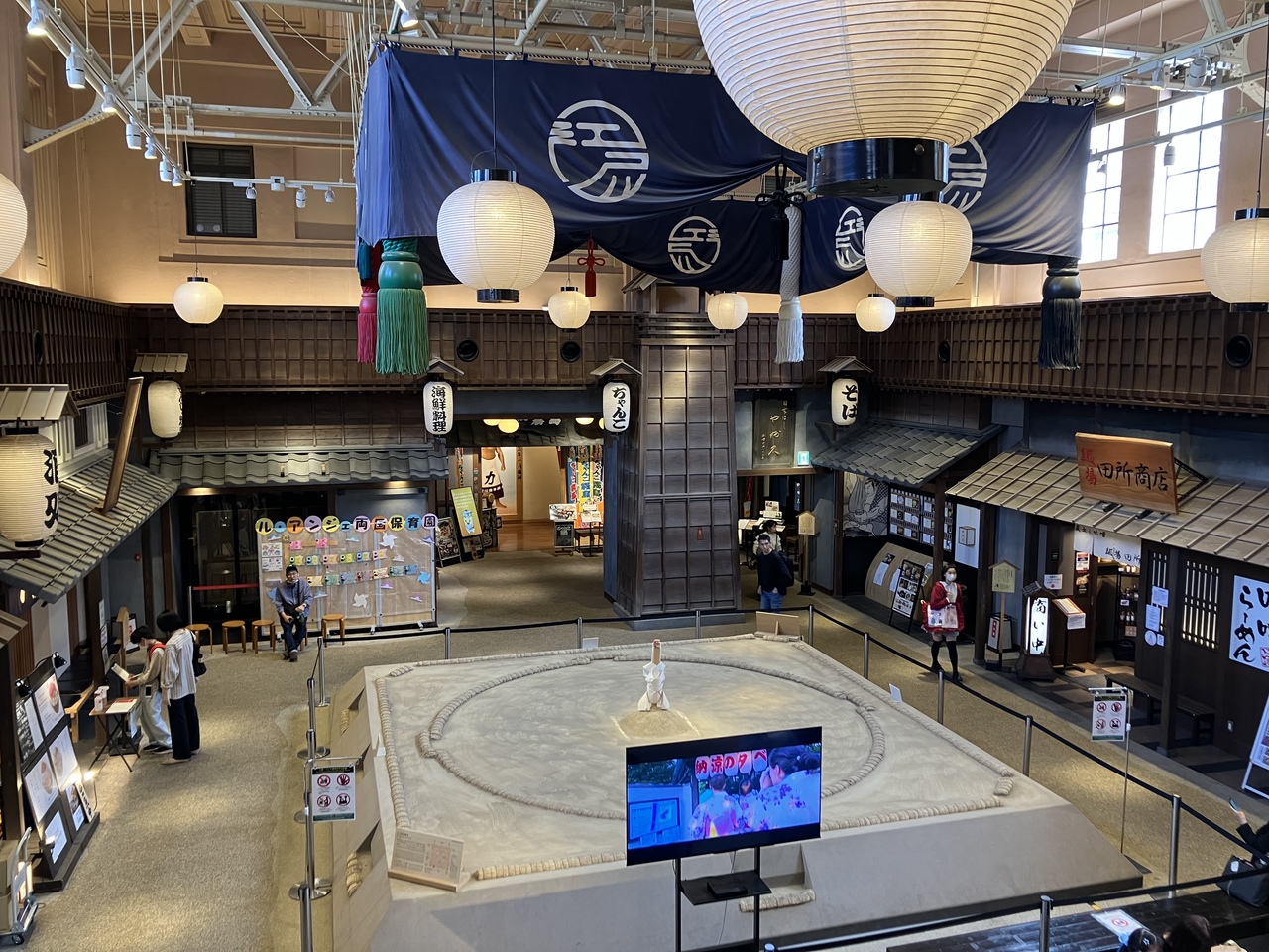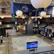 JR「両国駅」西口直結のJR東日本グループの商業施設です。1929年に建造の旧両国駅舎をリニューアルして工夫を凝らしています。吹き抜けのオープンスペースには、アット驚く「土俵」がど真ん中に!ここは江戸時代からの相撲の街だったと。周囲は「ちゃんこ鍋」を始め江戸、両国にふさわしい飲食店がテナントに入っています。ほとんど特徴のない駅ビルが多い中こちらは十分納得いく内容でした。観光案内所、セブンイレブンも併設しています。