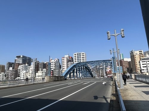 1923年(大正12年)、関東大震災後の復興計画により、1927年(昭和2年)に隅田川に架けられた橋です。上流側が吾妻橋、下流側が厩橋となります。西詰北側に「駒形堂」があることからこの名称になっています。橋が架けられる以前は「駒形の渡し」があったそうです。水色に塗られたアーチ橋で、現在は都道463号(浅草通り)が通っています。