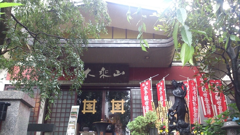 都営地下鉄大江戸線牛込柳町駅からすぐ、新宿区原町の大久保通り沿いにある日蓮宗の寺院です。慶長3年(1598年)市ヶ谷に創建され、天和3年(1683年)現在の場所に移転したそうです。山の手七福神の大黒天が祀られています。山門の先は急な石段になっていて、体の不自由な方にとっては参拝しずらい寺院の印象です。