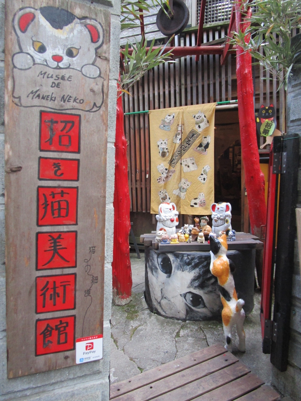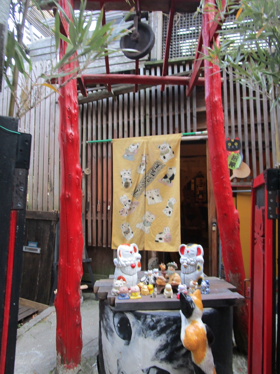 猫の細道の途中にあるのが招福絵師・園山春二氏が空き家を再生して作った招き猫の美術館で、館内にはコレクションした数千もの招き猫たちが所狭しと並べられています。