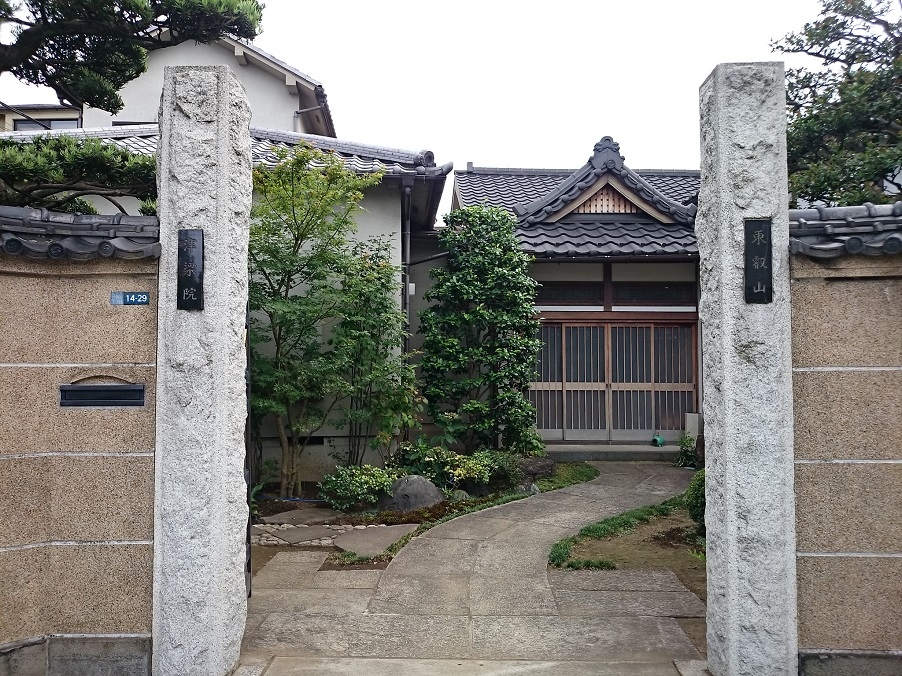 JR山手線鶯谷駅から徒歩10分程度、台東区上野桜木1丁目の寛永寺近くにある天台宗の寺院です。寛永13年(1636年)の創建と伝えられています。一般の住居のようなつくりの本堂で、門の津梁院という表札を見るまで、寺院だとは思いませんでした。