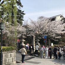 産寧坂は、東山の観光地として有名な場所です。町屋家屋が建ち並ぶ中、石畳を歩くと京都らしい情景を感じることができる場所です。通りには土産物店、陶磁器店、食事処などが並んでいます。春になると霊山本廟の参道付近にきれいな桜が咲いているので人だかりができていました。産寧坂から臨む八坂の塔の景色はいつ見ても素晴らしいです。