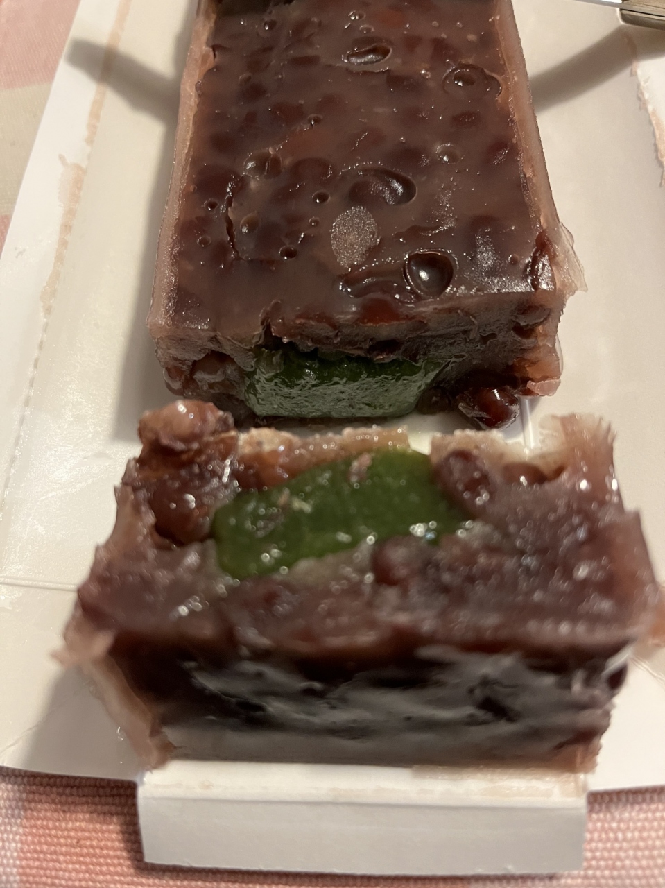 小倉羊羹の中に「餅」が入ってるだけですが、甘さも控えめでとても美味しいです。