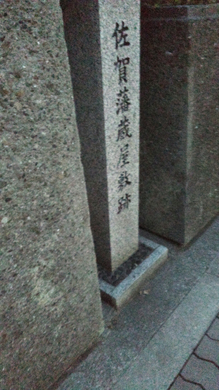 現在は裁判所ですが、以前は佐賀藩の屋敷があったそうです。大阪市内に佐賀藩というのは連想しにくいですが、年貢米の換金などに使用されていたそうです。もっと石碑を拡大して欲しいと思いました。どのような経緯で現在に至るようになったのか関心を持ちました。