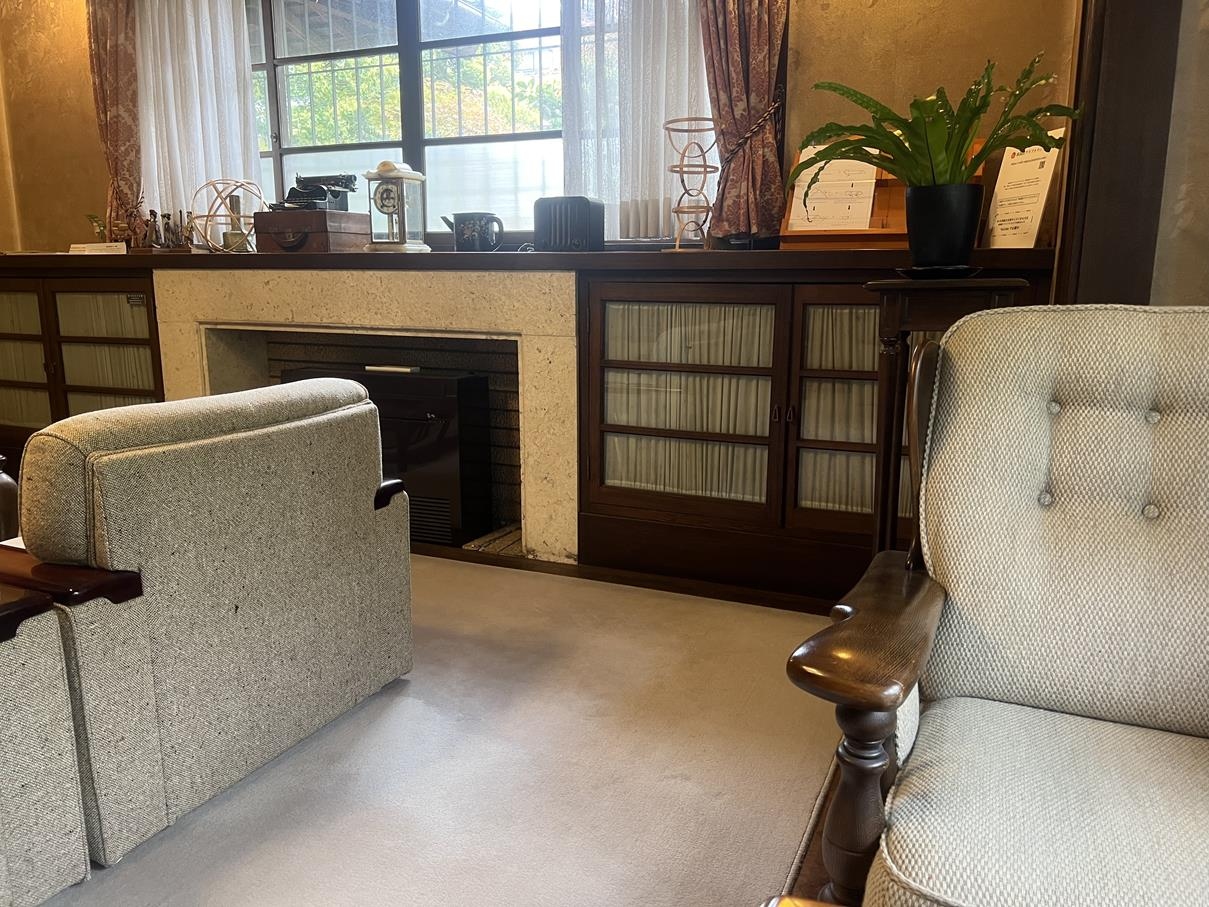 旧日本銀行新潟支店長役宅だった砂丘館内のレトロな応接間でコーヒーを