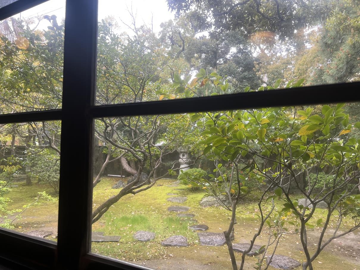 - 洋風のレトロな応接間+窓からの日本庭園の風情でコーヒーの味と香りが一層引き立ちます