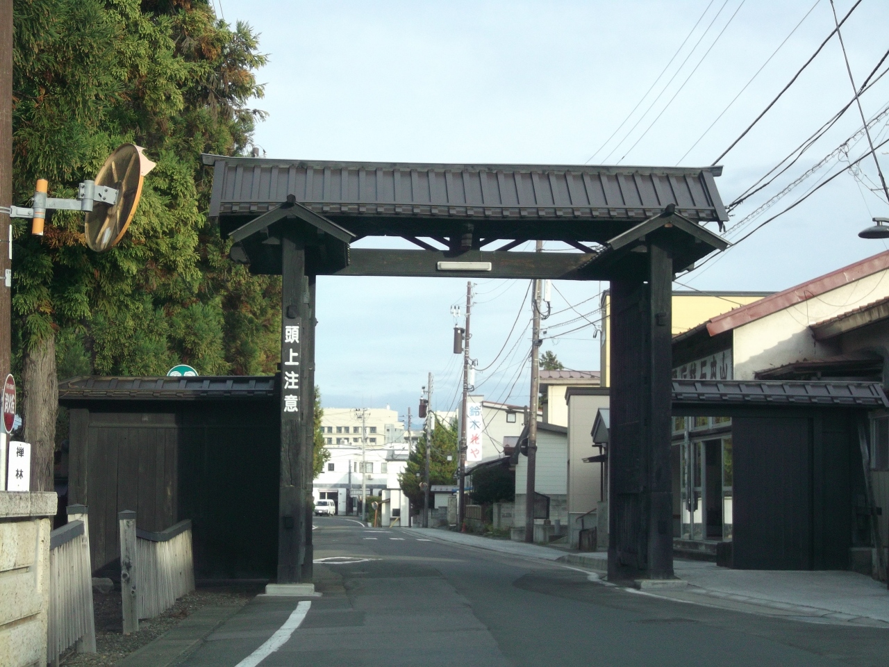 弘前市の寺町である禅寺が並ぶ禅林街に入るとすぐのところに、この黒塗りの門が立っています。高さ5メートルほどの長勝寺の総門であり、ここから先には道の両側に曹洞宗の寺院が並んでいて、長勝寺の山門につながっていきます。門は形はシンプルですが、城門のような重々しい雰囲気がありました。
