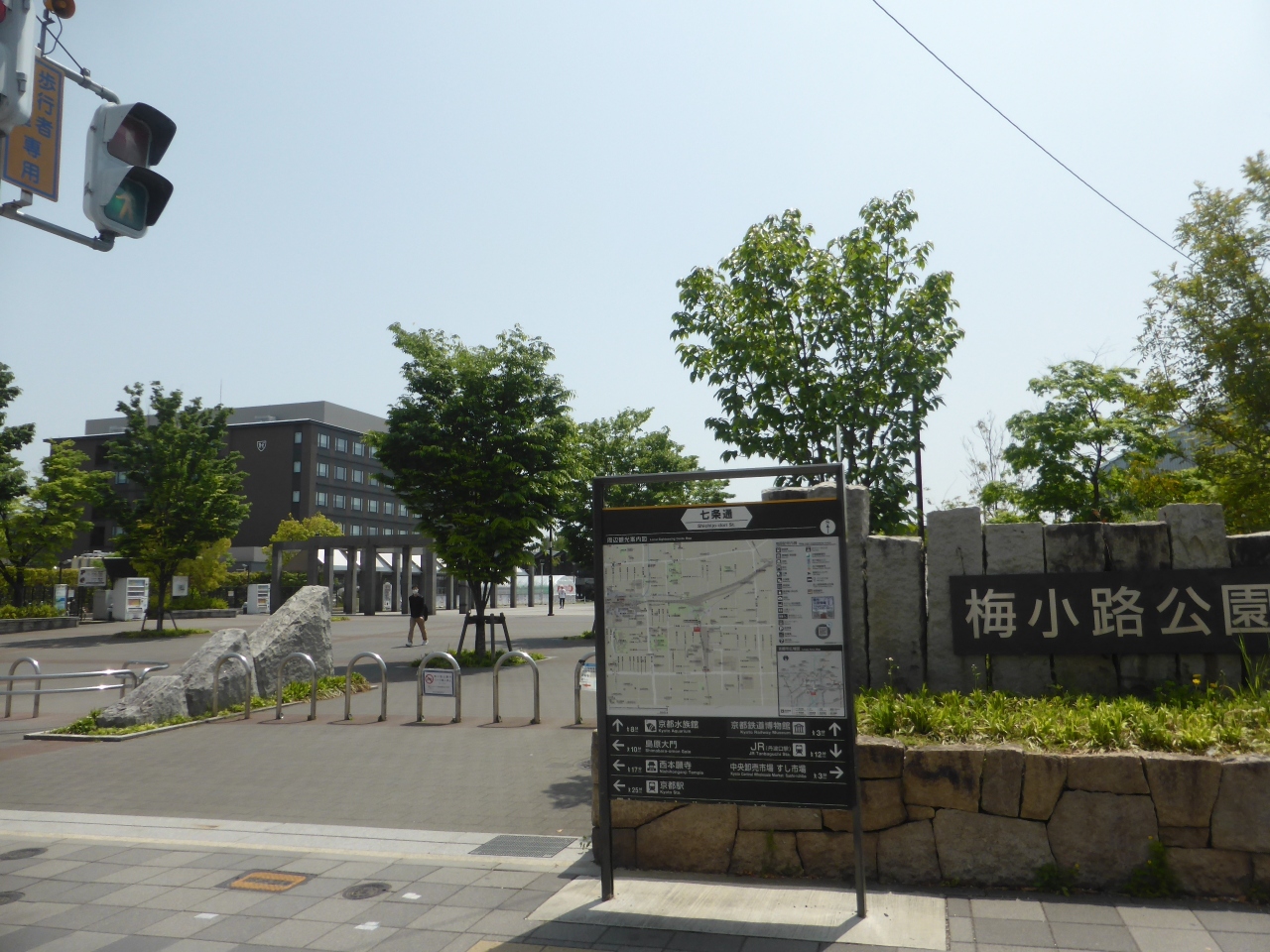 梅小路京都西駅から徒歩3分、京都駅からも歩いて行ける距離です。広い公園内には京都鉄道博物館や京都水族館の施設があります。いつでも自由に利用できる広々とした「芝生広場」や水と親しめる「河原遊び場」では子供たちが元気に走り回っていました。