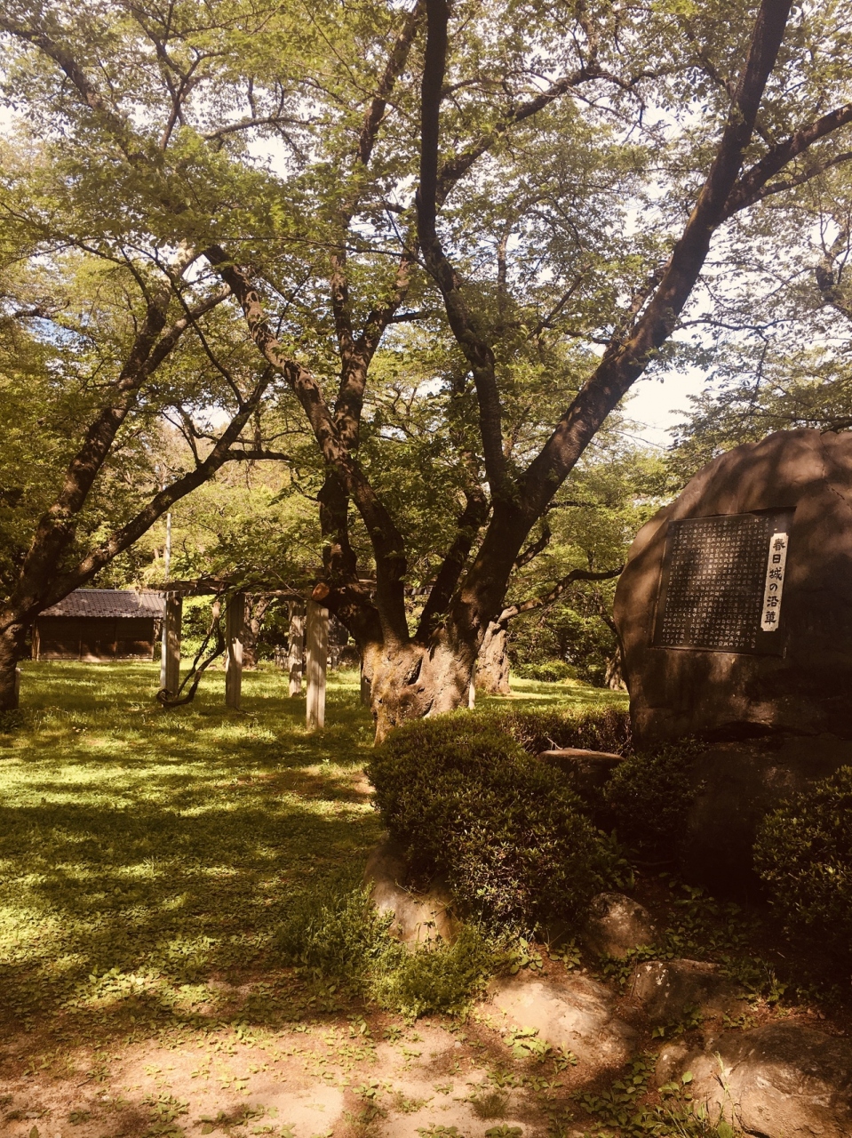 現在は公園になっていて、広場や子供の遊戯施設もありたくさんの親子連れが遊んでいました。城址は建物等の跡等はないですが、濠等をはっきりと見ることが出来ます。本丸跡は平で広く、大きな城だったことが分かります。
