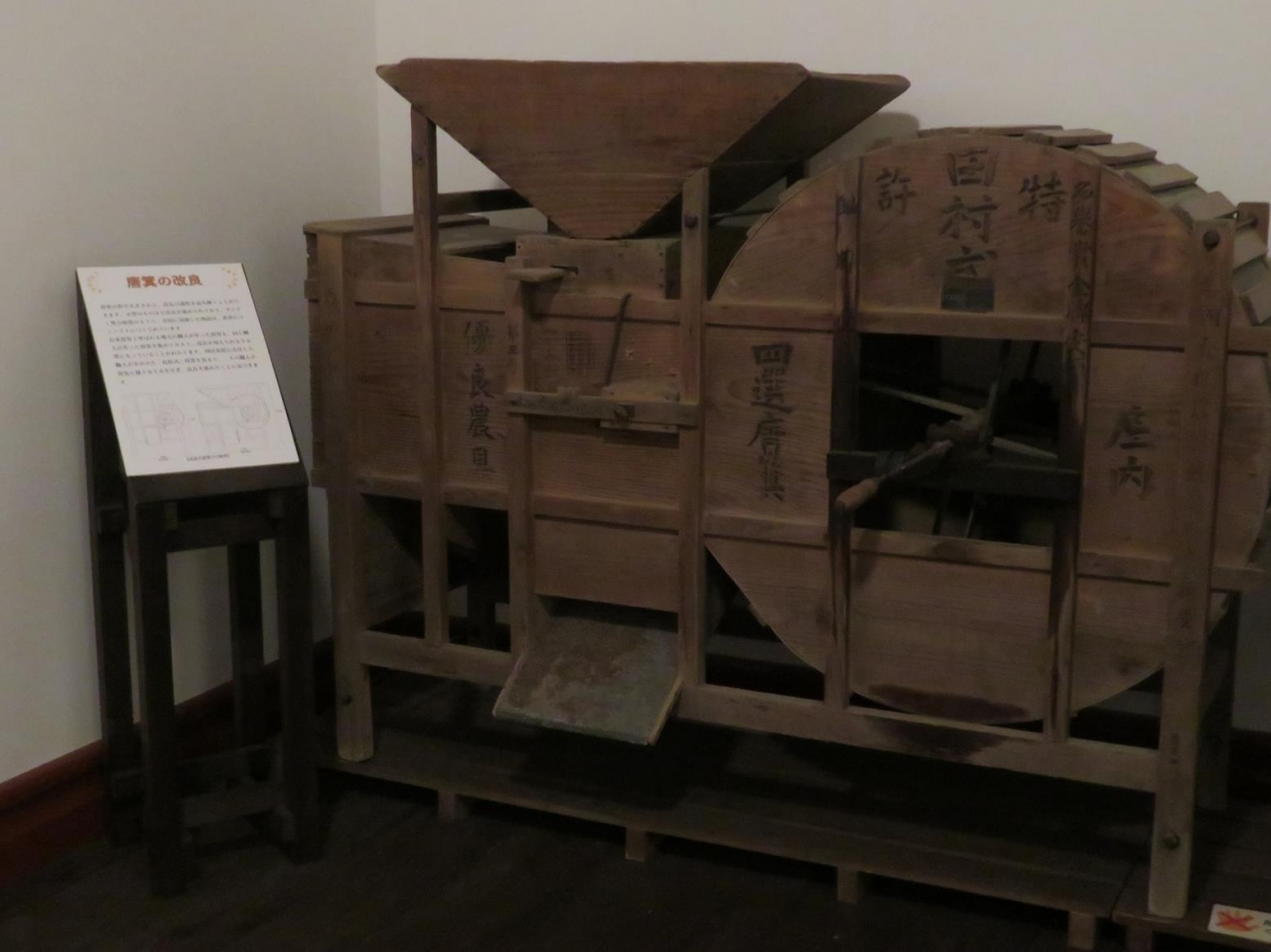 内部には、新潟や旧新潟税関庁舎の歴史を示す展示品のほか、なぜか、農業で使われていた木製の水車や農業用機器も置かれていました。