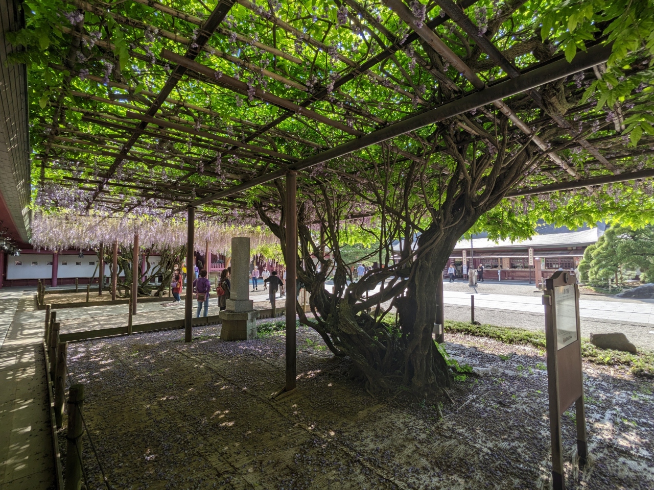 笠間市観光の目玉となります。俗に言う日本三大稲荷神社の一つと言うことです。5月のゴールデンウイーク期間中に訪問しましたが、一番いいときは過ぎてましたが、それでも藤の花が綺麗でした。樹齢400年の銘木だそうです。