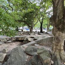 平和大通り沿い、白神社の近くにあります。公園のようになっていますが、この池は国泰寺の創建当時の面影をとどめており、しかも、白神社の境内に連なる岩礁を池として利用しているのでいわば広島の原風景といえるかもしれません。とても興味深い場所でした。