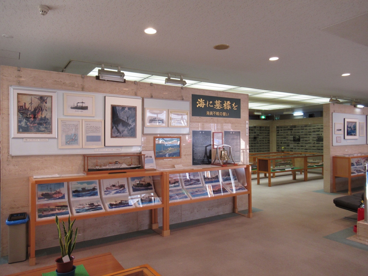 1941年から1945年にかけて日本がアメリカ、イギリス、オランダ、中国など世界の多くの国と戦った第二次世界大戦において被害を受けた船と海員に関する資料を展示しています。