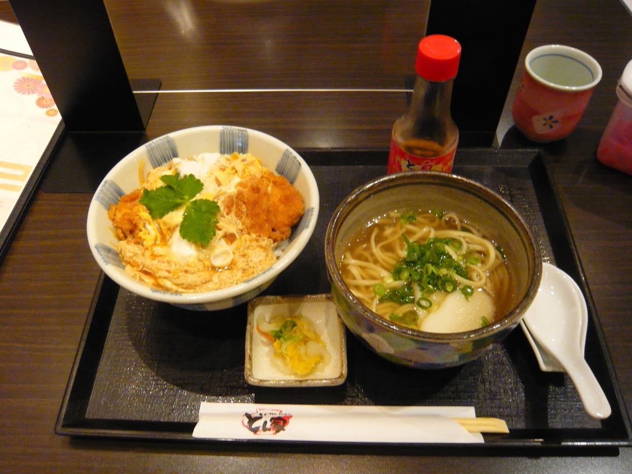 でその天ぷらのあるメニューをと思ったのですがかつ丼にそそられて沖縄そば付きセットにしました。