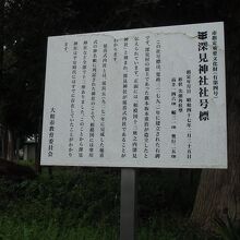 説明板によると、市内で唯一「延喜式」神名帳(927)に掲載された延喜式内社です。