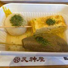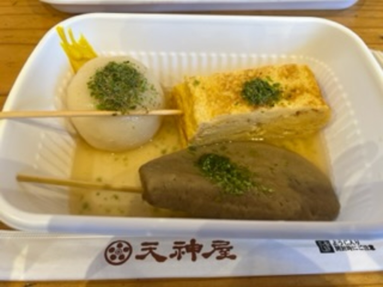 天神屋のおでんが屋台風に売っていたので妻と好きななものを少しずつ食べた。