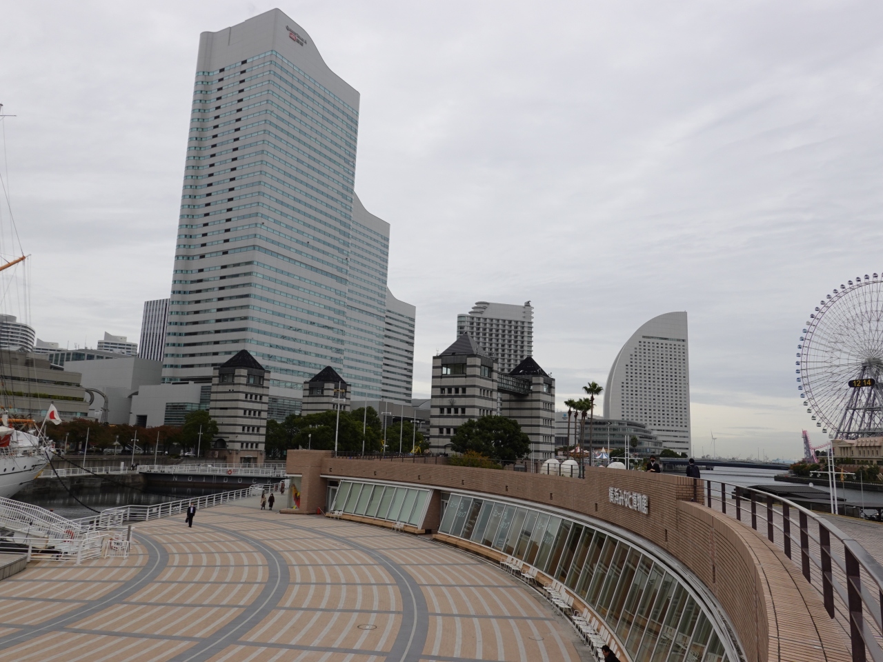 休日は大勢の人で賑わう「日本丸メモリアルパーク」ですが、コロナ禍、平日ということを差し引いても人が少ないと感じました。逆に言えば、平日は穴場の観光スポットかも知れません。あいにくの曇天で、帆船・日本丸もあまり引き立っていないのが残念でした。