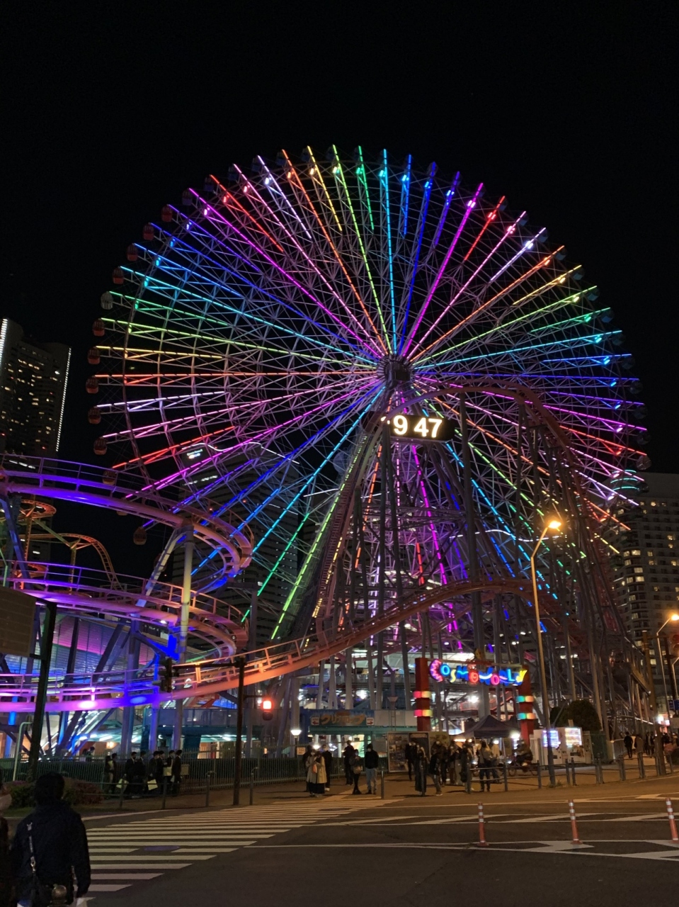 横浜みなとみらいではひと際目立つ、イルミネーションの観覧車です。