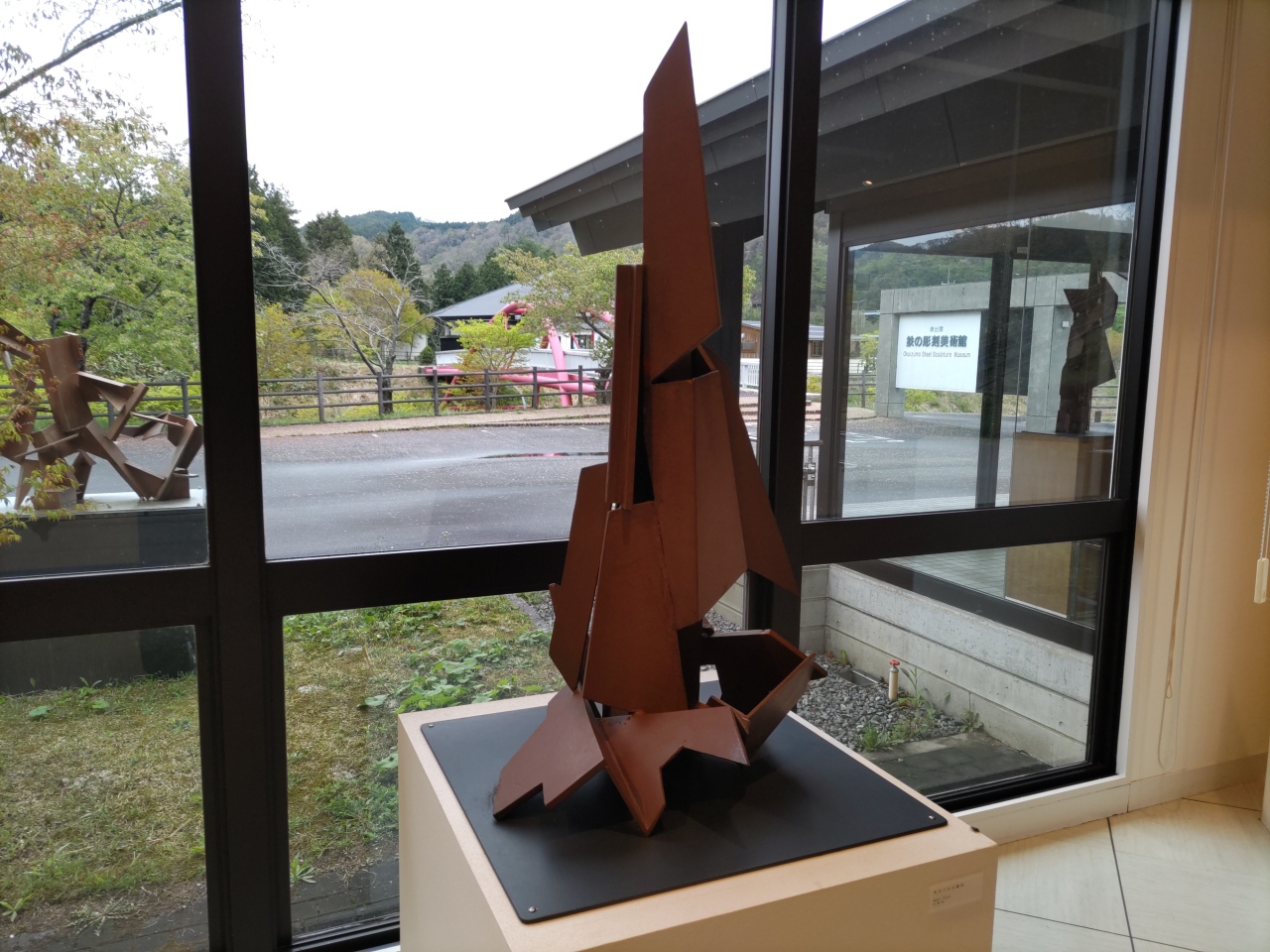 島根県雲南市から国道314号を南下すると、広島県境近くに道の駅「奥出雲おろちループ」があり、国道を挟んで反対側(北側)に鉄の彫刻美術館がある。道の駅からも国道を超えて陸橋を歩いて直ぐである。この美術館は、「神話の町」、「鉄の町」の奥出雲のシンボルとして設立されたもので、剛鉄による彫刻作家の故下田治氏が制作した作品が展示されている。館内には、展示室のほか研修室なども併設されており、館外にもいくつかの彫刻が置かれている。静かな雰囲気で独特の鉄の芸術をゆっくり鑑賞するのもなかなか良い。入館無料である。