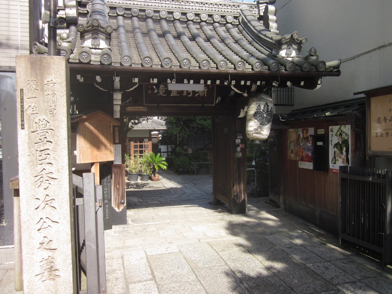 豊臣秀吉に関するお寺のようで、今から500年以上前に造られた歴史がある感じのお寺です。寺町は人の通りが多いので、観光に来られている人も何人か見ました。外国人の方も多かったです。境内のみ入場できて、本堂などには入場できないようです。入口が立派なお寺でした。