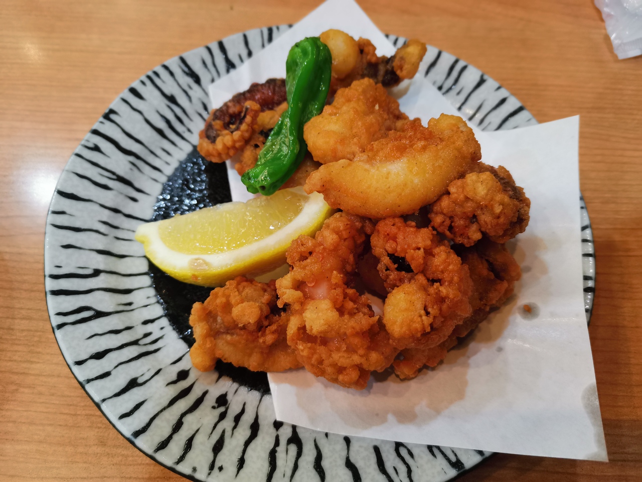 現地で夜食に近い遅めの夕食を食べる予定だったので、軽い夕食をこちらで頂きました。悩んだ末、サーモン、いくら、ホタテの北海3種握り(正式名は失念)を食べました。少々お高めでしたが、なかなか美味しかったです。タコの唐揚げも良かったです。お隣の席の方が煮魚を食べていて、それも美味しそうでした。また機会があったらお邪魔したいと思います。