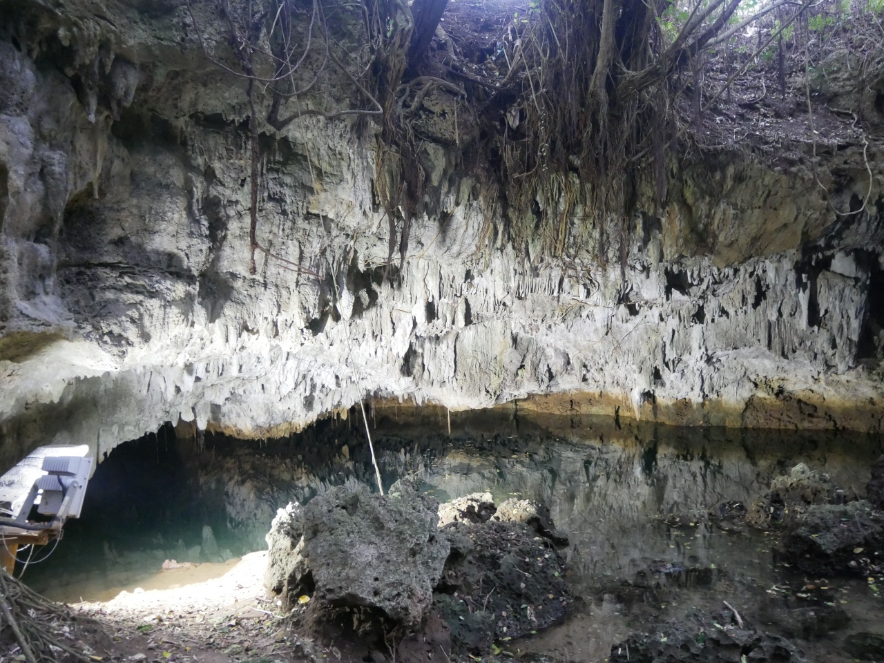 駐車場のすぐ横にある階段を降りるとちょっとしたジャングルみたいになっていて奥に洞窟がありました。