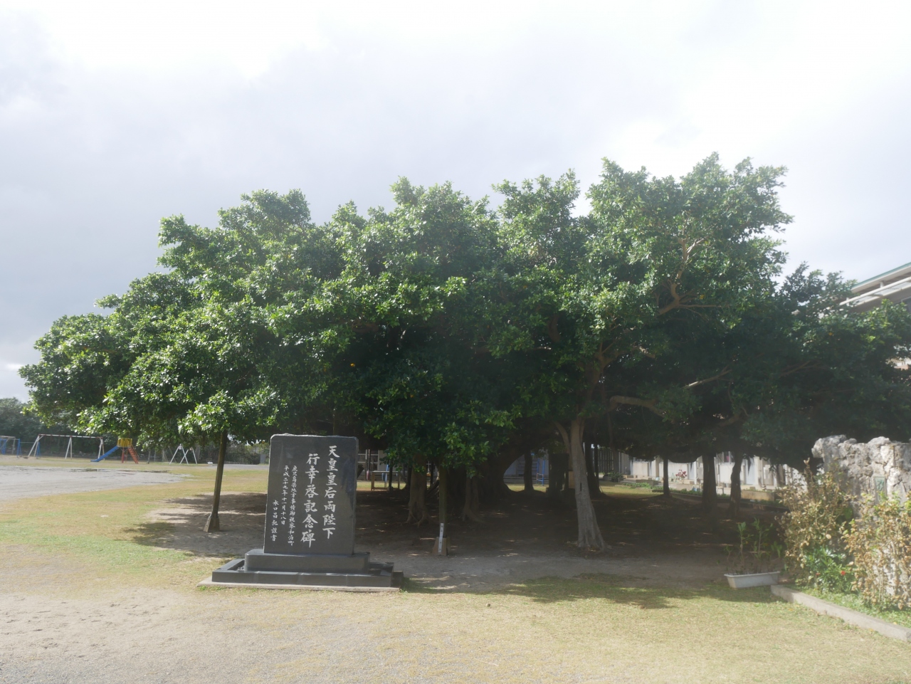 これが1本の木?と思うほど見事に広がったガジュマルが校舎の近くにあり、案内板によると120年前に植えられたものらしいです。