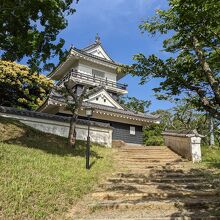 駐車場から天守までは600メートルほど離れており、山を登って行く必要があります。舗装された道ですので登山というほどではないです。頂上にコンクリート製の天守があります。入場無料です。眺めはとても良く、房総の山々がきれいに見えます。途中曲輪などの遺構も残っており道中も飽きません。