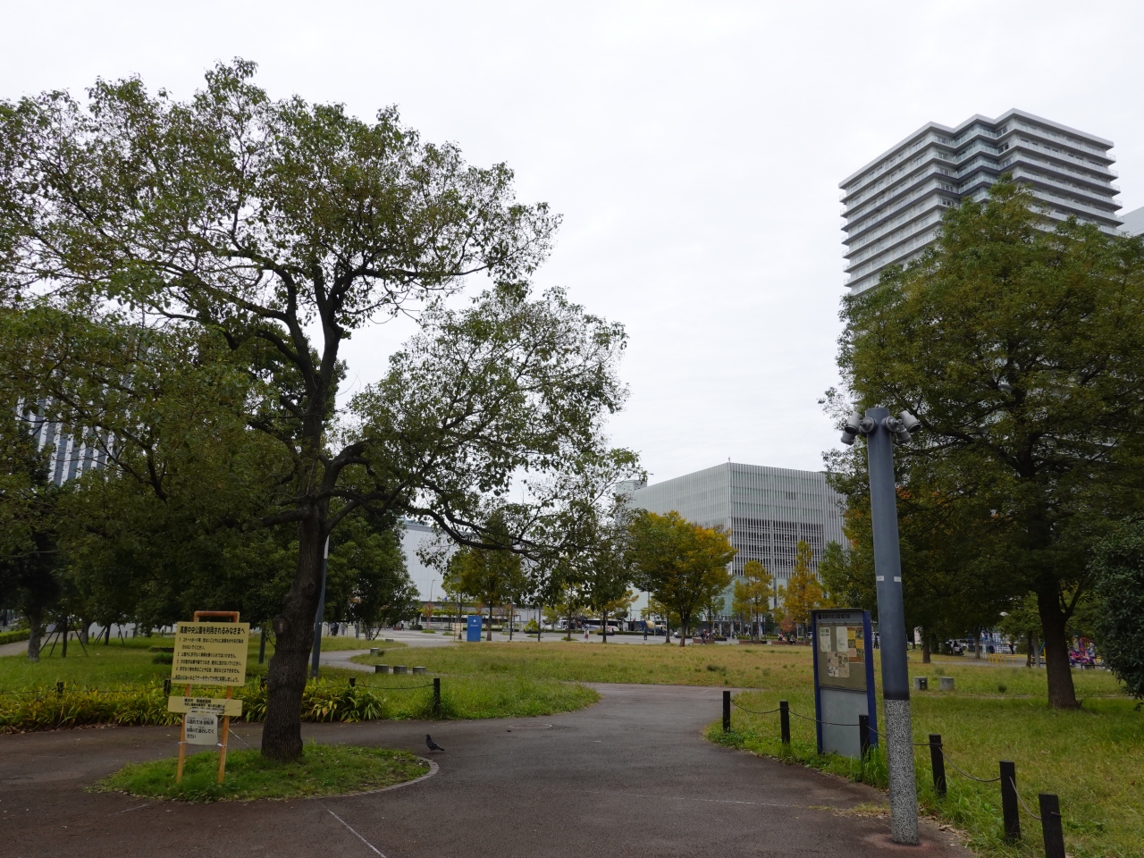 高島中央公園は、みなとみらい地区の一画、とちのき通りを挟んでアンパンマンミュージアムの南東に位置します。芝生の広場や遊具などもありますが、さほど特筆すべき点が感じられない公園です。公園のベンチに座ってひと息ついた時、周囲を取り囲むみなとみらい地区のビル群が印象に残りました。