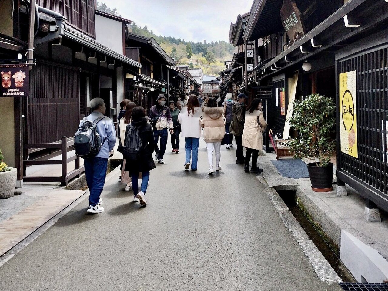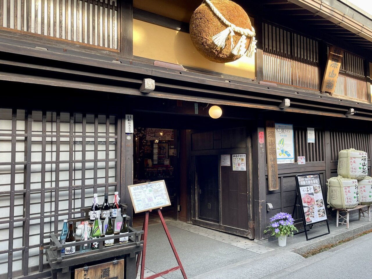 高山観光のメインとなる場所で、とにかく景観が素敵です。古い情緒たっぷりの町並に、土産店や飲食店、僕の知る限り、6件の造酒蔵があり、酒蔵巡りをしました。試飲しながら好みの酒を購入し、飛騨牛の握りを食べたり、赤かぶの漬物などのお土産を買いながら観光できるってテンション上がります。