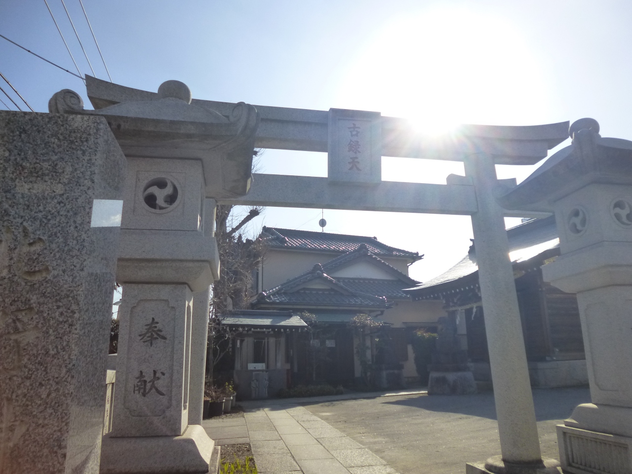 柴又駅から西へ8分ほど、新宿の方へ向かっていったところに古録神社があります。新しそうですが鳥居の前の石灯篭が立派な神社です。境内は広くないのですが、学業の神様である菅原道真が祭神である北野神社、商売繁盛の矢付稲荷神社が鎮座しています。地元の方たちが足しげくお詣りに来ていそうな神社でした。