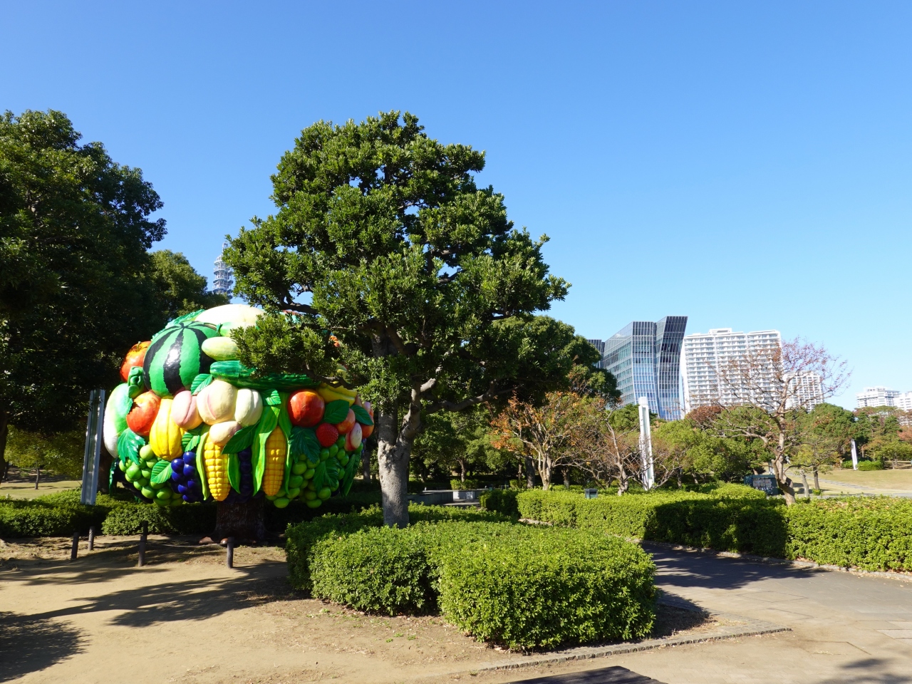 韓国人作家の作品で、横浜トリエンナーレ2001に出品されたものです。訪れた日は抜けるような青空で、木々の緑も色濃く、鮮やかな色彩の作品を引き立てているように感じました。エネルギッシュなその外観からは、パワーをもらえそうな気にさせてくれます。