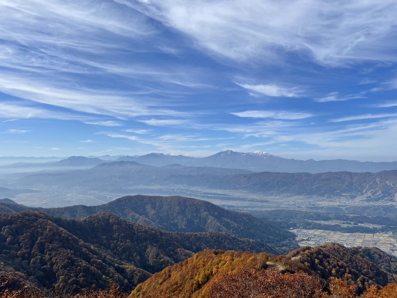 10月下旬に野沢温泉スキー場のゴンドラに乗って行きました。ゴンドラからは山の紅葉を見ることができ、毛無山の山頂までハイキングで訪れることができます。山には展望台もあり、ゆっくりベンチにすわって火打山などの山が眺められます。