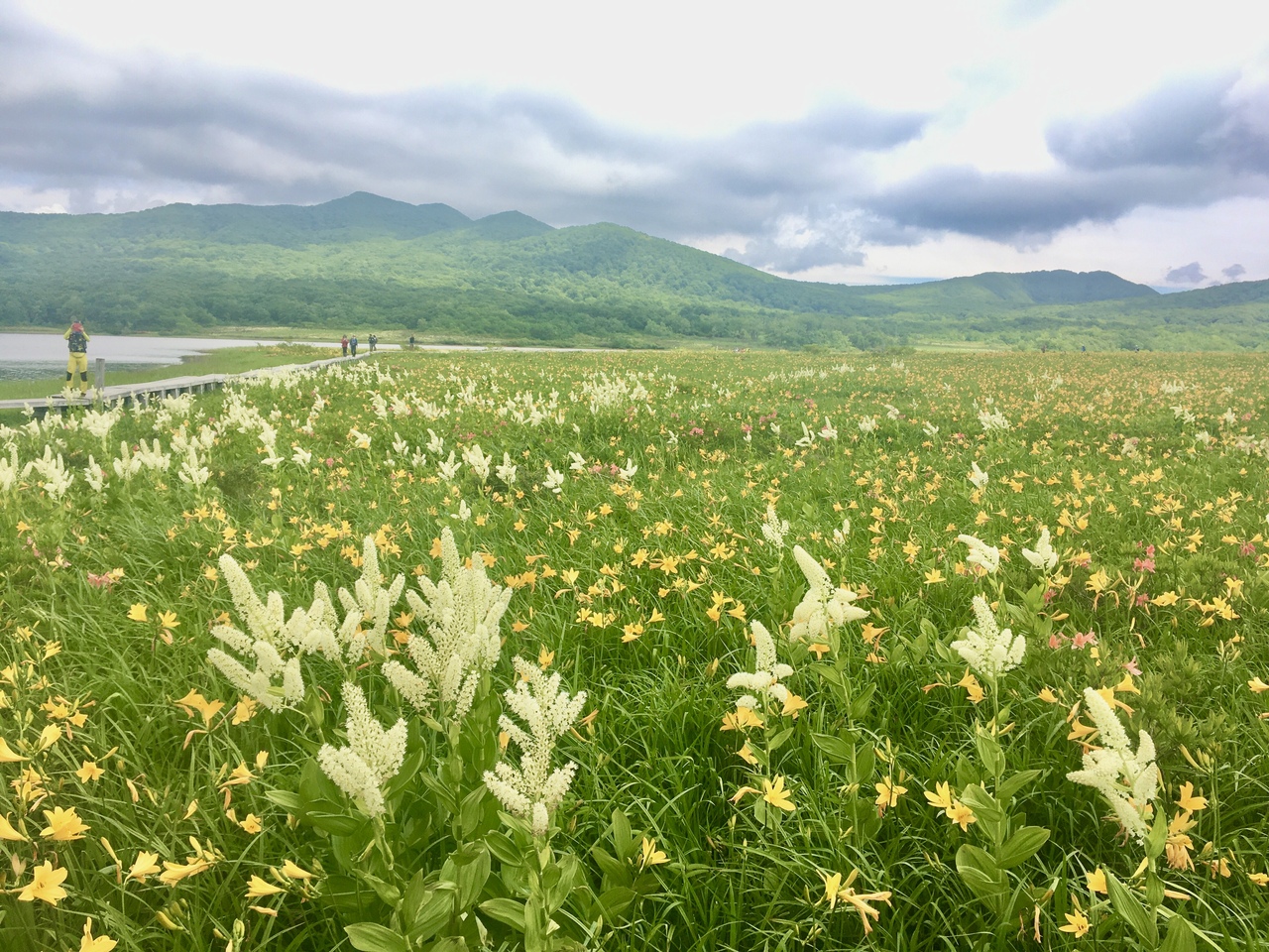 都内から日帰りで、電車とバスを乗り継いでいきました。電車も乗り換えがたくさんありますが、バスも乗り換えでやっとたどり着きます。登山口からは1時間程度ですが、足元ドロドロなので靴に要注意です。沼はニッコウキスゲとコバイケイソウの大群生地でとても美しかったです。