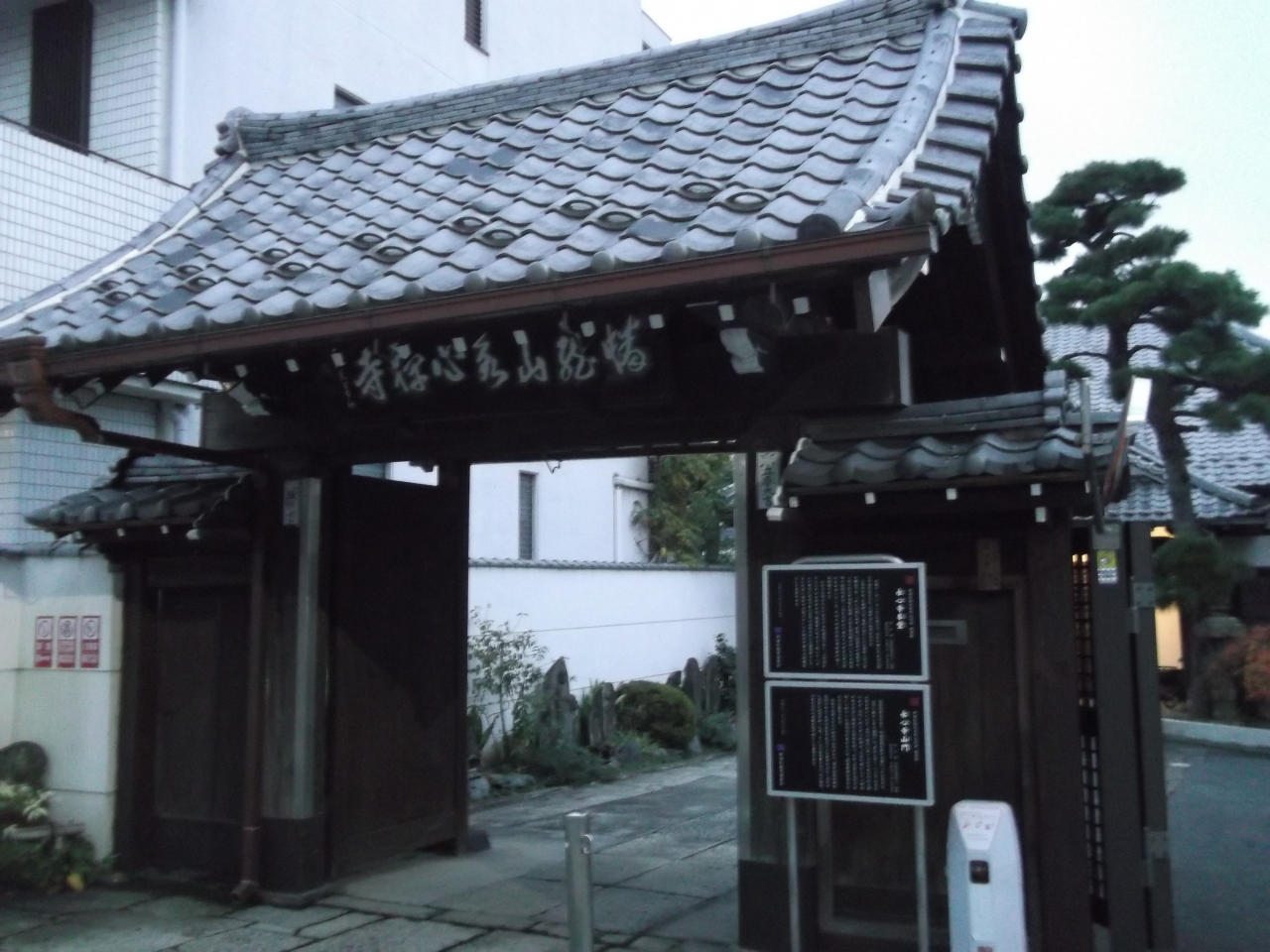 丸ノ内線四谷三丁目駅から歩いて9分ほど、須賀神社からほど近いところにある曹洞宗の寺院です。立派な造りの山門を抜けると、平石の参道の先に屋根に重厚感のある本堂がありました。山門と本堂は区の有形文化財に指定されているようで、なるほどと納得できる立派なものでした。