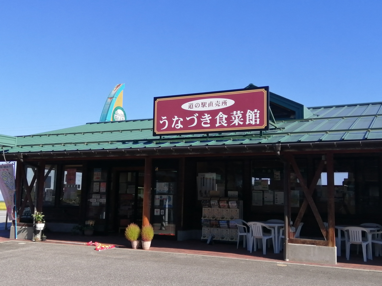 駐車場は広く、敷地内には物販の建物の他に「宇奈月麦酒館」という地ビールとレストランの施設もありました。