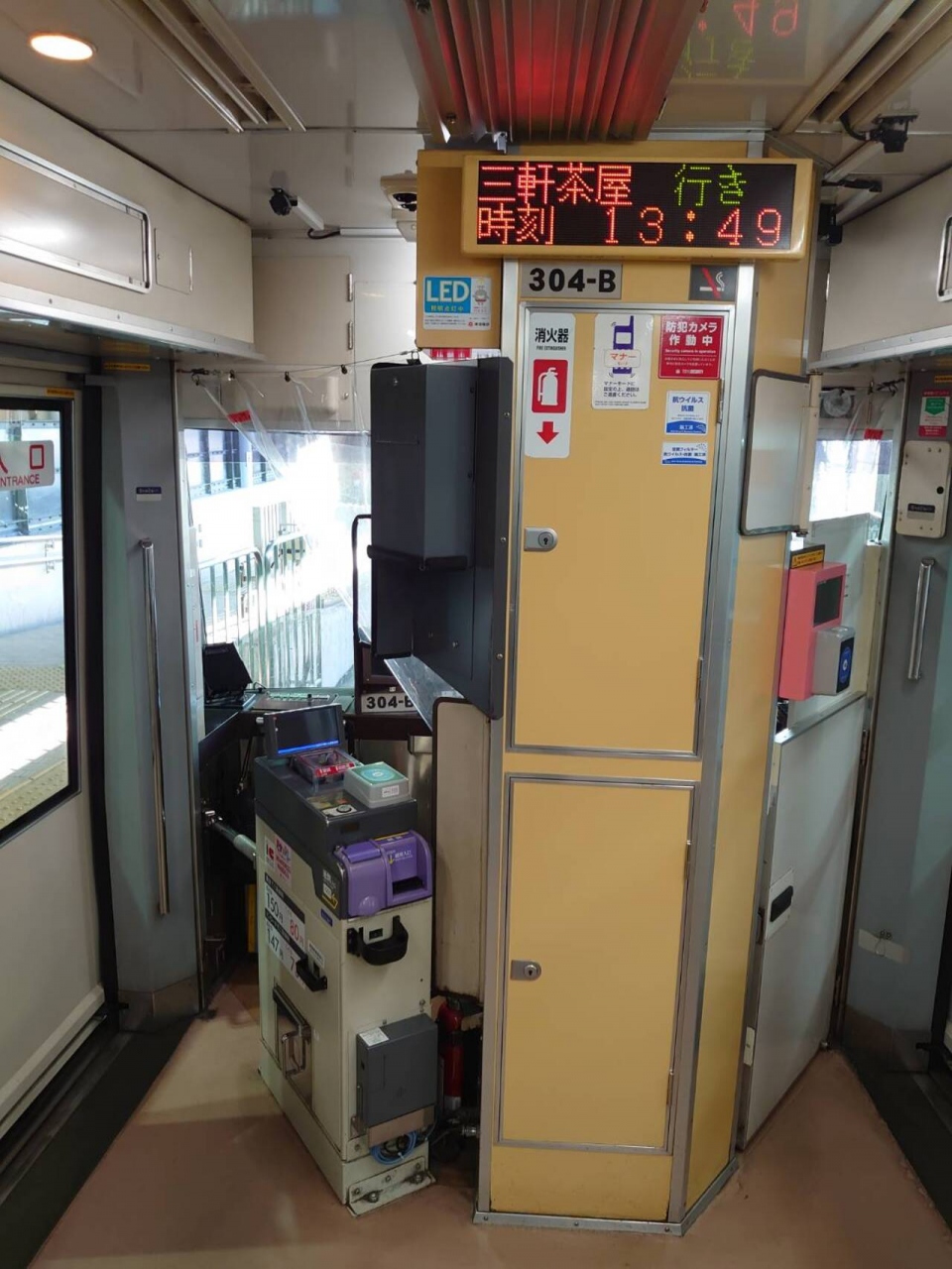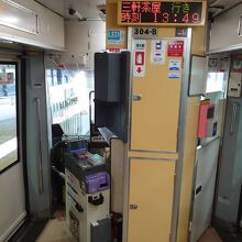 車内に行き先と出発時刻の表示がありました。他の電車ではあまり出発時刻を表示しているのをみたことがないので珍しいなと思いました。