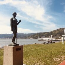 沿線の駐車場は無料でした。整備された遊歩道になっていて,歩きやすく芝生になっているエリアが多く、彫刻のような像や無料の足湯もあり,ところどころ屋根付きのベンチもあって寛げる場所でした。湖畔には遊覧船が運転していました。