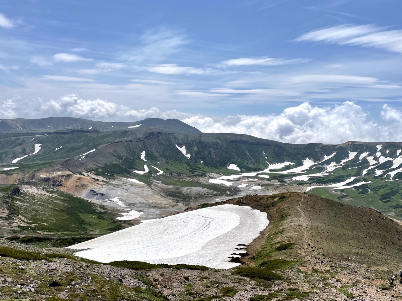 旭岳に続き、北海道で2番めに高い山です。旭岳と黒岳の縦走路の途中にありますが、完全に途中ではなく、分岐から往復30分です。登るのは少し大変ですが、山頂からは縦走路からは見えない愛別岳方面などが見えて、違う景色が楽しめるので、往復するのがおすすめです。