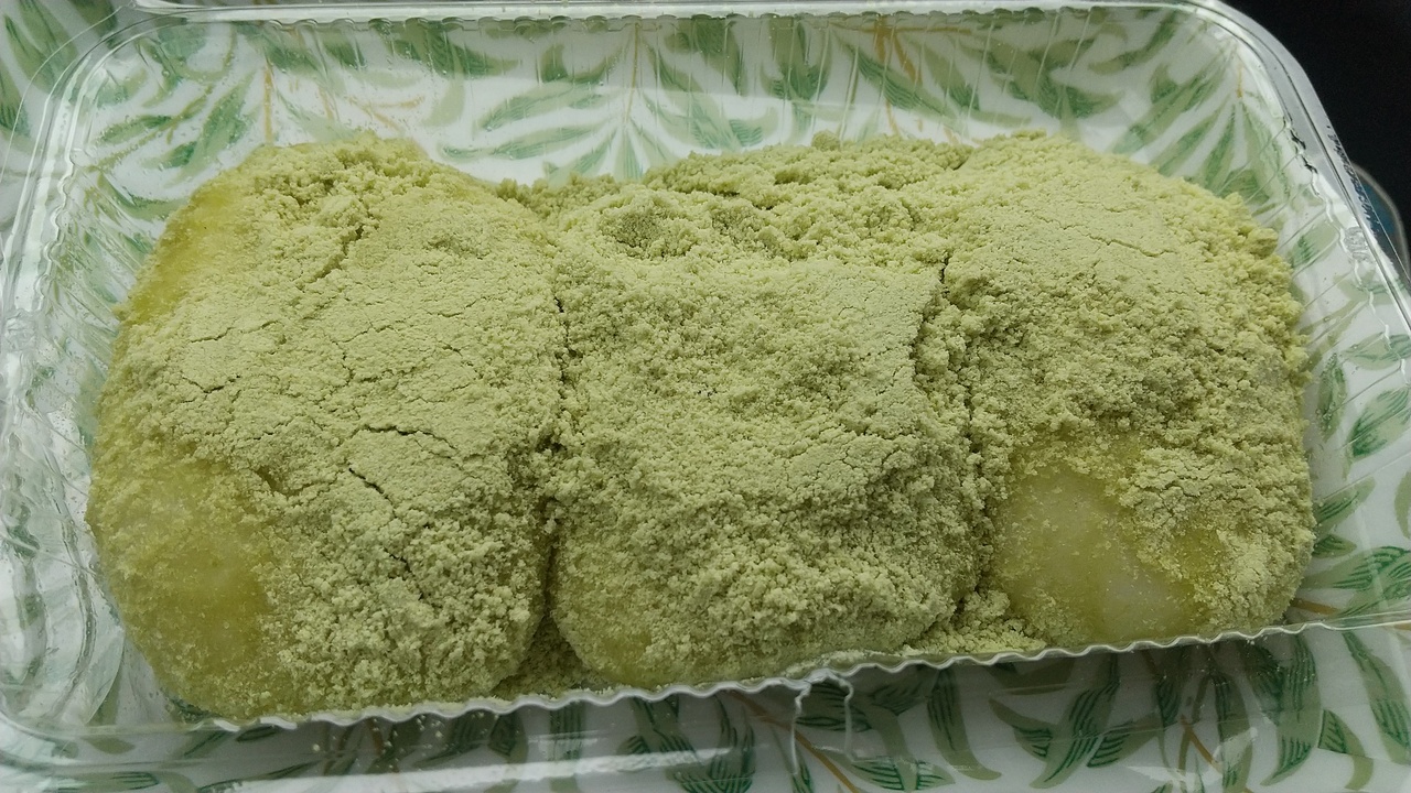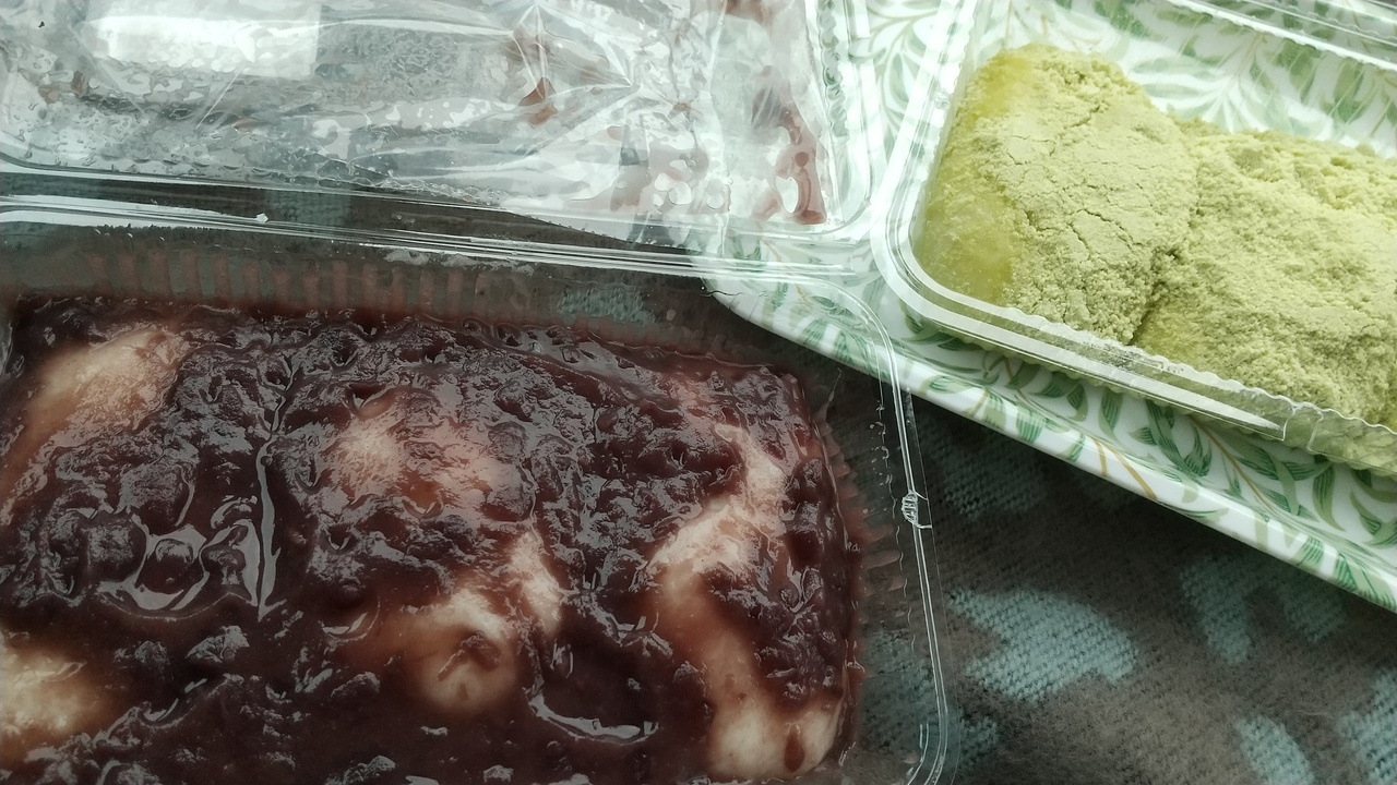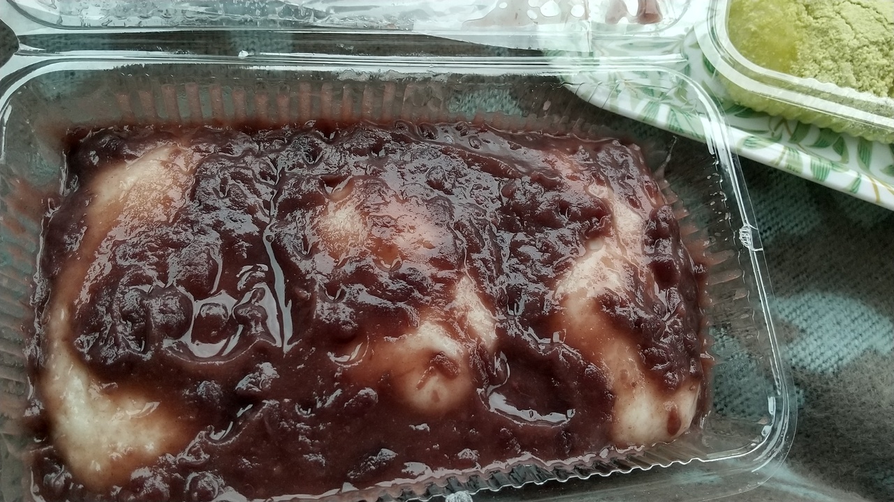 名物のお餅は「きなこ」「あんこ」のまだ温かい作りたてを買えました。地元のお母さんの手作りの味わいです。2種の他に「ごま」もあります。