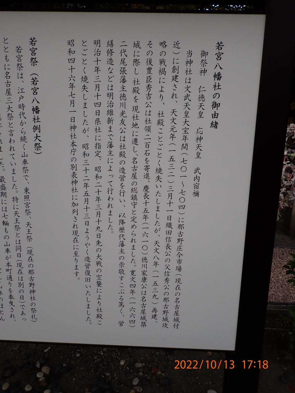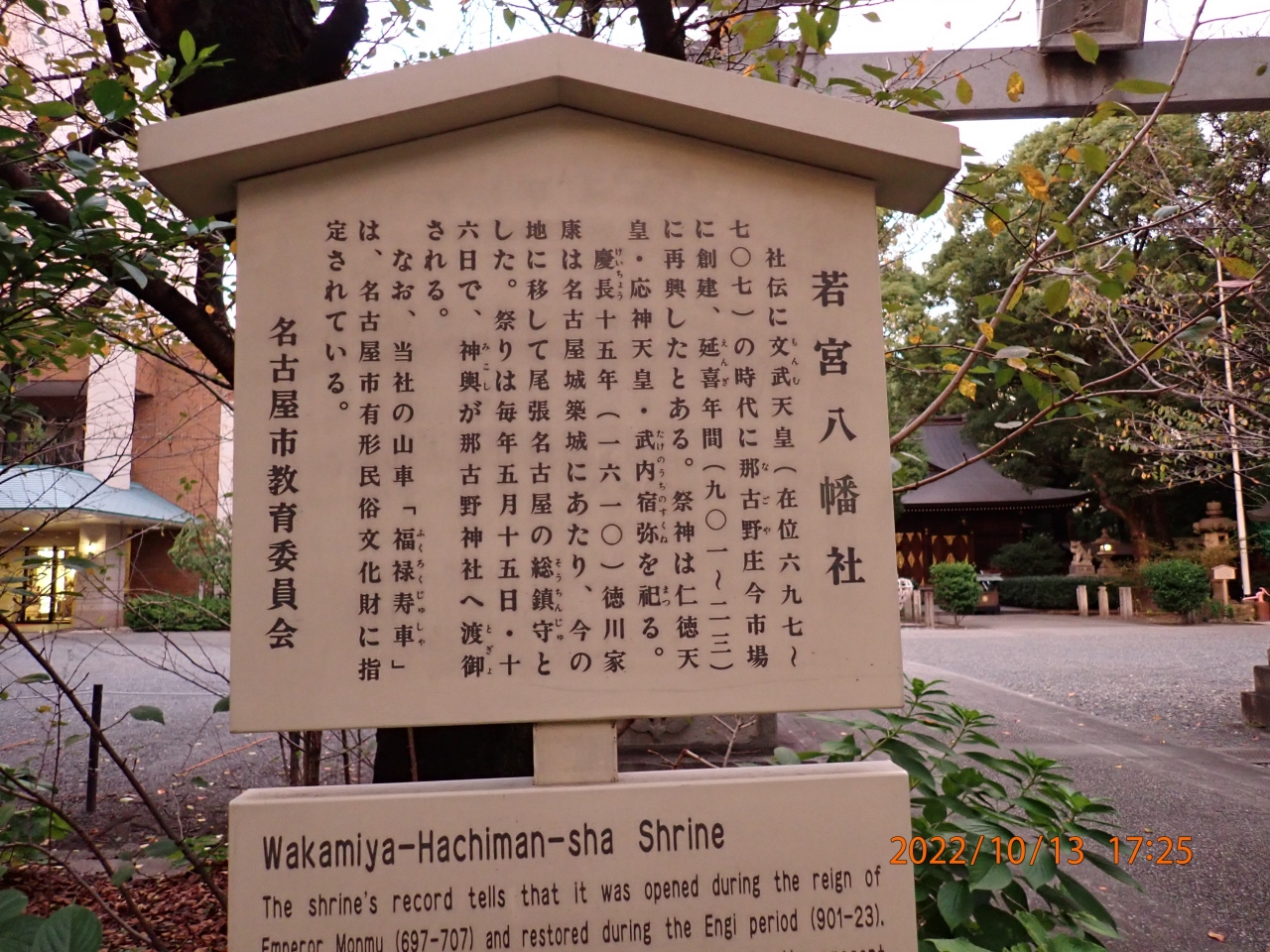 名古屋市観光で立ち寄りました。若宮八幡社は、若宮大通り沿いにあり、創建は8世紀初頭の大宝年間とかなり古く、名古屋の総鎮守で、「福禄寿車」という山車は、名古屋市有形民俗文化財になっているそうです。境内の連理稲荷社の「お願い狐」の表情が可愛かったです。また、懐かしい手押しポンプの井戸水を利用した「水みくじ」などもありました。