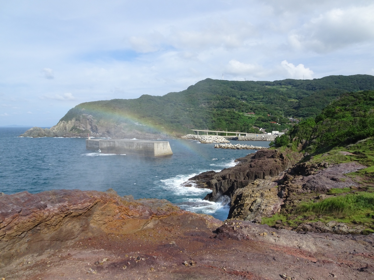 元乃隅神社から海岸沿いに向かうと該当エリアになりますが、岩場のため足場が悪く、観光する際は注意が必要です。波のしぶきが岩場を越えてくることが多く、潮吹きのように見えます。天候次第ですが、波が反射し、虹のような物が見えることもあります。