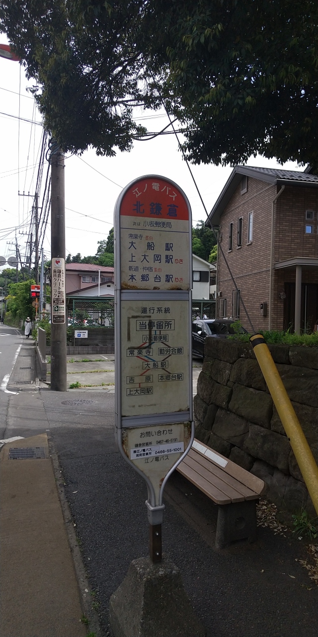 江ノ電バスを使うのも便利です。オレンジ色とクリーム色の車体が特徴的で、路線バス感があります。レンジ色の濃淡のカラーリングは50年近く不変。