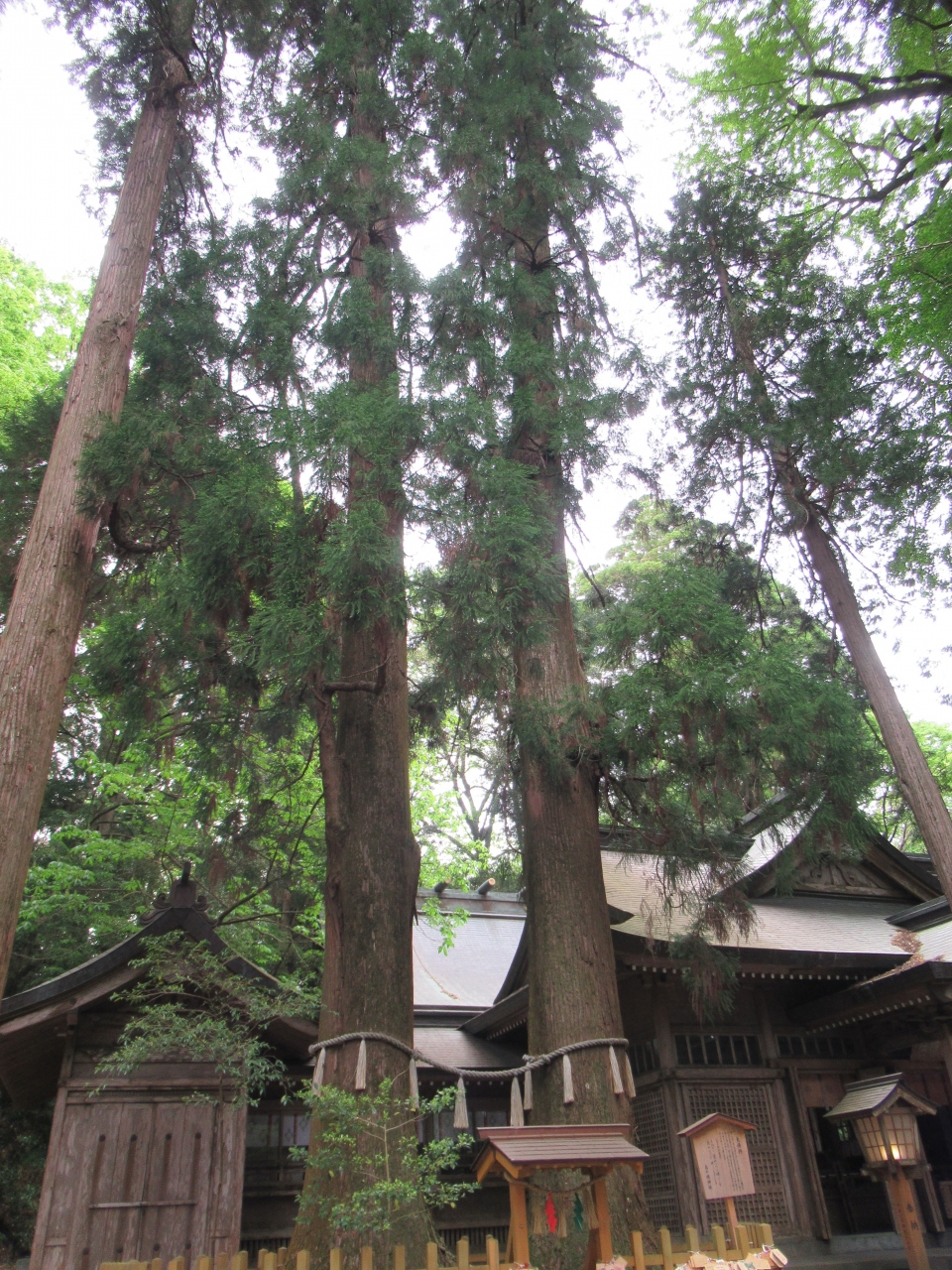 創建1800年を誇る、高千穂八十八社の総社です。鎌倉時代に畠山重忠が寄進した鉄製の狛犬をガラス窓の隙間から眺められました。境内には樹齢800年と伝わる大きな秩父杉や、根元が一つに結ばれている夫婦杉など歴史を感じる大木がたくさん植えられています。神社の歴史からして古びた社殿を想像していましたが、堂々とした立派な社殿にびっくりしました。