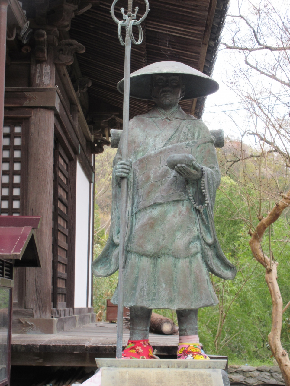 境内の弘法大師像が、手作りの草鞋を履いているのが珍しく、あとで調べました。松葉杖なしでは歩けなかった人が、参拝によって完治したという言い伝えがあるそうで、多くの草鞋が奉納されるようになったそうです。