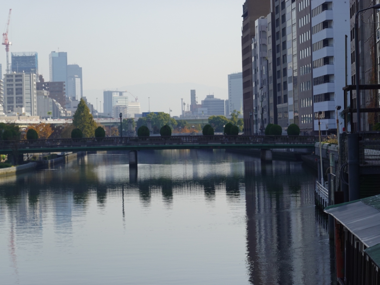栴檀木橋は土佐堀川に架かる橋のひとつで、淀屋橋のひとつ上流になります。最初は江戸時代初期に架けられ、その後何度か架け直され、現在の橋は1985年の竣工です。交通量も少なく、幅員16メートル程度の小さな橋ですが、目立たないながら味わいのある橋だと感じています。中之島の紅葉が彩りを添えているのが印象的でした。