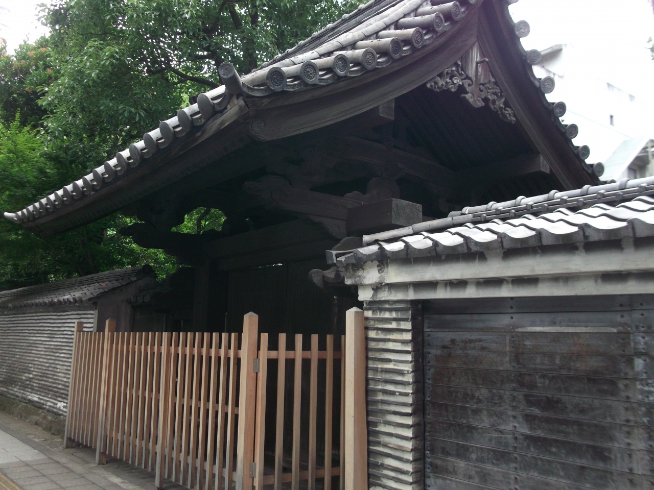 地下鉄大門駅から増上寺に向かうと、三解脱門の少し手前にあるのが廣度院です。浄土宗の寺院で境内はこじんまりとしていますが、表門はなかなか立派な造りで、門から横に広がって続く練塀とともに有形文化財に指定されています。練塀は、白黒交互の横線のコントラストがとても鮮やかに見えました。