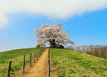 2023に初めて訪問。入り口はちょっとわかりにくく、道は離合が難しいくらい狭く、駐車スペースは公式のものはありません。なので、平日とか早朝にささっと行ったほうがいいと思います。一本桜の全景と岩手山を一緒に撮るにはドローンが必要です。サクラ自体がとても立派で大きく、見ごたえがあります。