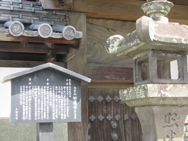 福岡県の南部の筑後地方に位置する久留米は筑後川と筑後平野、耳納連山に囲まれる自然豊かで、今回は寺町を散策してきました。大小様々な17寺院が集まって、まさしく神聖な地域ですね。寺町周辺を指す案内板があり散策に役立ちます。寺町は江戸時代に久留米城の敵の侵入を防ぐための役割を担い、久留米藩により寺院が集められた一角の妙正寺と正覚寺の間にある浄土真宗「妙蓮寺」があります。門前には浄土真宗・七宝山・妙蓮寺と刻まれた石柱があります。立派な山門と庫裏は藩財政方主宰の田代守次下屋敷から移築されたもの、1932年に本堂は再建されたものと駒札に記されていました。また山門脇には石燈籠があり歴史を感じさせる雰囲気があるものでした。門前には数台の駐車場もありました。本堂、庫裏は閉ざされていたので失礼して参拝だけさせていただきました。